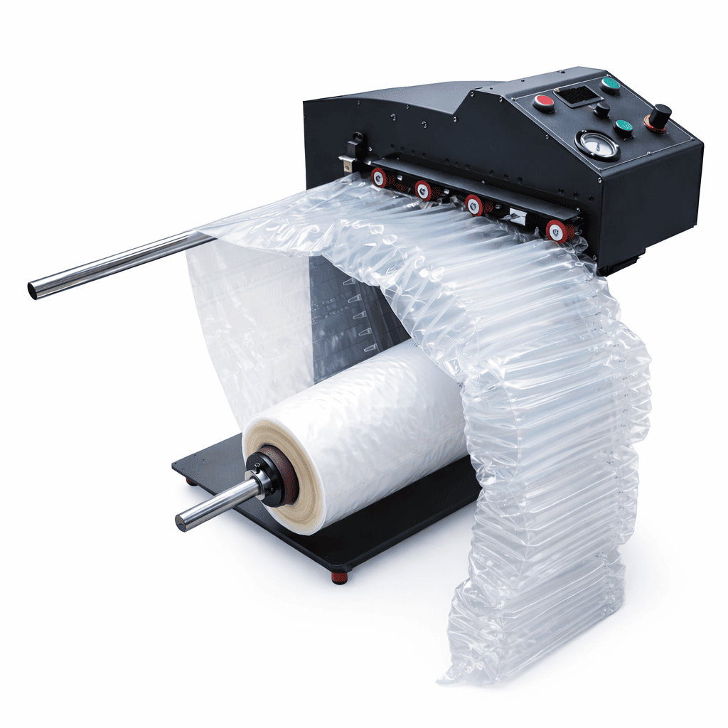 Die airQuak ist eine intuitiv einfach zu bedienende Luftpolstermaschine, die per Knopfdruck unkompliziert von Rollen Luftpolstertaschen produziert um zerbrechliche Waren wie Weinflaschen sicher zu verpacken. Sie verarbeitet den Luftpolstertyp U- und L-Type. Trotz Ihrer Kompaktheit ist die airQuak mit einer Produktionsgeschwindigkeit von 20m je Minute leistungsstark.